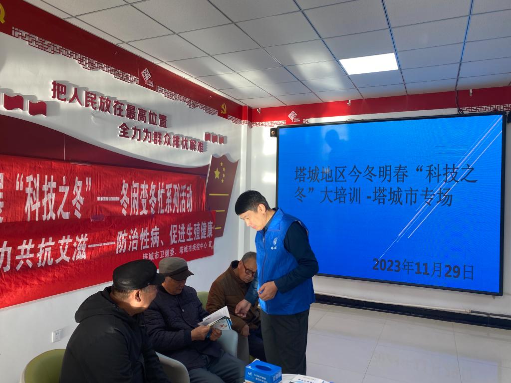 为进一步提升居民群众的科学素质,有效提高居民群众生活质量,11月29日,塔城市科协联合塔城市疾控中心、塔城市禁毒大队,集聚花园社区,为居民开展“科技之冬”——“冬闲”变“冬忙”专题讲座。