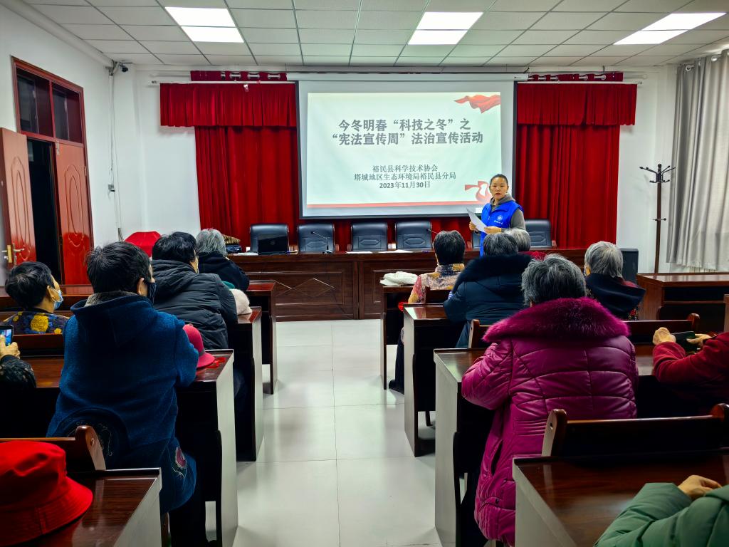 在第十个国家宪法日到来之际,为不断深化普法教育,提高社区群众的法律意识,裕民县科协、环保局联合开展“弘扬宪法精神 构建和谐社会”主题宣传进社区活动。