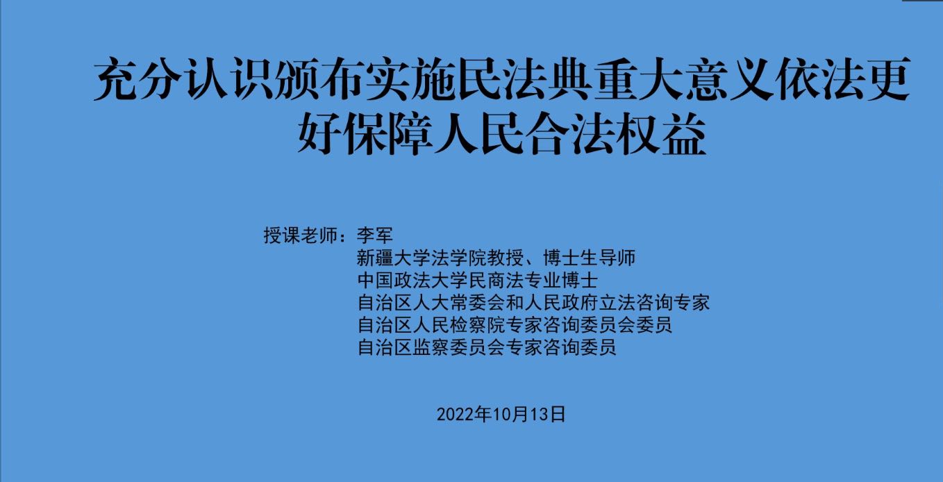 10月13日上午,民丰县科协组织老科协老科大30余名职工继续线上学习《民法典》重大意义。
