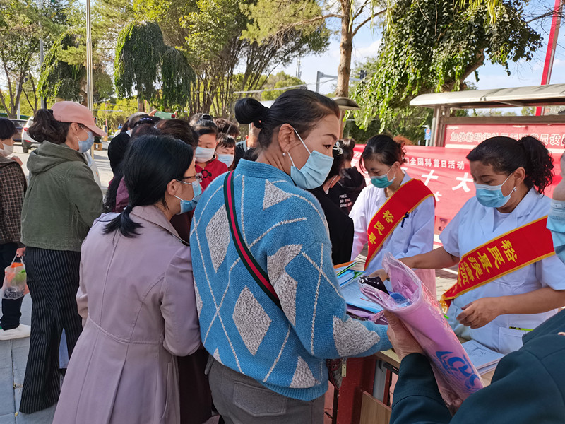 为大力弘扬科技志愿服务精神,裕民县科协组织县疾控中心、县人民医院、妇幼保健院医疗专家志愿服务者在加依勒玛街社区新时代文明实践站开展“全国科普日”健康知识科普宣传进社区活动。