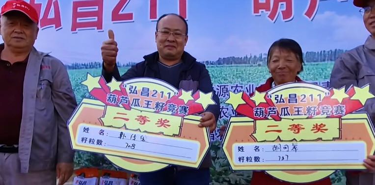 此次葫芦瓜王评比大赛现场热闹非凡。活动前期进行了充分准备,评选程序虽然简单,但专业评委、赞助商、主持人、奖品一个也不少。在单瓜籽量评选过程中,经过农业专家的三轮挑选、点评,最终评选出一等奖、二等奖、三等奖种植户所种植的葫芦瓜。