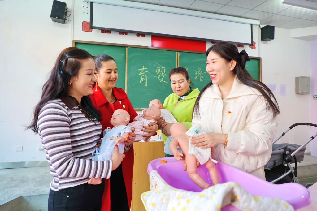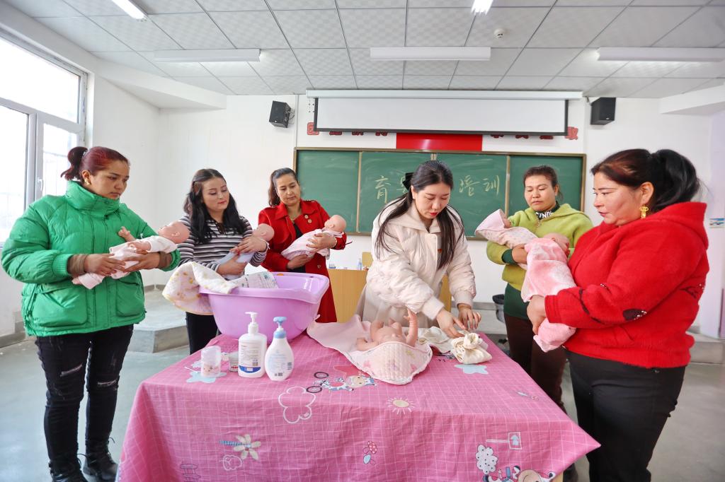 在市职业技术学校培训基地内,老师正在向学员们示范婴儿护理技术,并对热爱母婴工作的妈妈们提出的各类疑问进行现场解答,保证大家听得懂、学得会、用得上,并以此转变传统育婴观念,辐射推广家政服务、养生护理、美食烹饪等新理论、新技能、新理念,为农民增收致富提供科技保障。