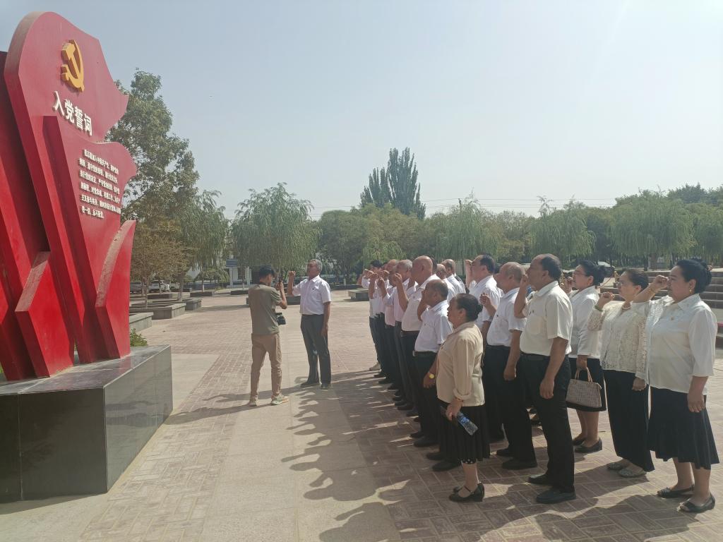 面对党旗,全体老党员又一次举起右手,在吐尔洪会长的带领下庄严宣誓,熟悉的誓词把大家的思绪拉回到自己入党时的庄严场面,提醒自己牢记当时志愿入党的义不容辞的责任。