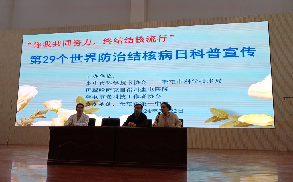 为进一步提高市民群众对结核病危害性的认识,科学防治结核病,结合奎屯市第29个“世界防治结核病日”活动安排,3月22日,奎屯市科协联合市科技局、老科协、伊犁州奎屯医院在奎屯市第一中学开展“你我共同努力,终结结核流行”科普宣传活动。