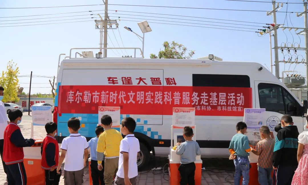 为助力2022年库尔勒市我们的中国梦—文化进万家活动,进一步激发群众学习科技知识热情,提高科学文化知识素养,近日,库尔勒市科技馆带领“科普大篷车”来到英下乡金梨社区开展科普服务。