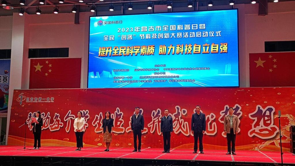 升全民科学素质,激发广大群众爱科学、学科学、用科学的热情,助力科技自立自强,9月15日下午,昌吉市2023年全国科普日暨青少年“创客”节启动仪式在市一中体育馆举行。昌吉市科协、昌吉市教育局等单位领导及全市各中小学师生200余人参加了开幕仪式。