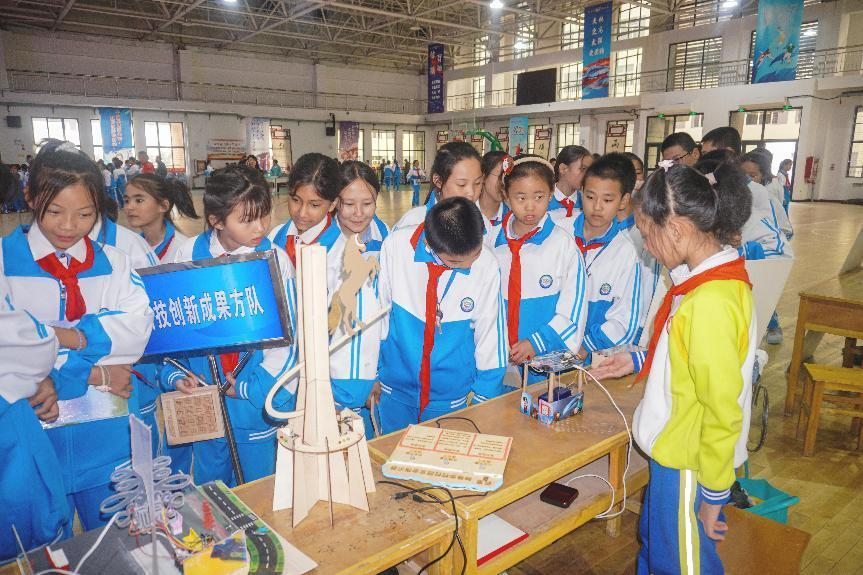 与会嘉宾观看了形式多样的科普活动,包括固定翼飞机花式表演、科技机器人表演秀和无人机编队表演,并参观了科幻画展板及学生创作的科技作品展示。