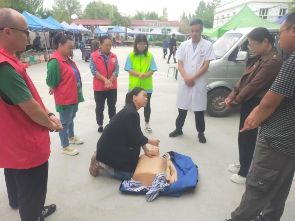活动现场,各单位悬挂宣传标语,设立咨询台,组织当地群众进行免费义诊和宣传活动。县人民医院普外科、骨科、内科的医生和福建援疆专家对前来问诊的群众进行了诊断,并给予治疗的方案。同时,免费发放相关药品,对应急救护知识进行现场演示和指导。