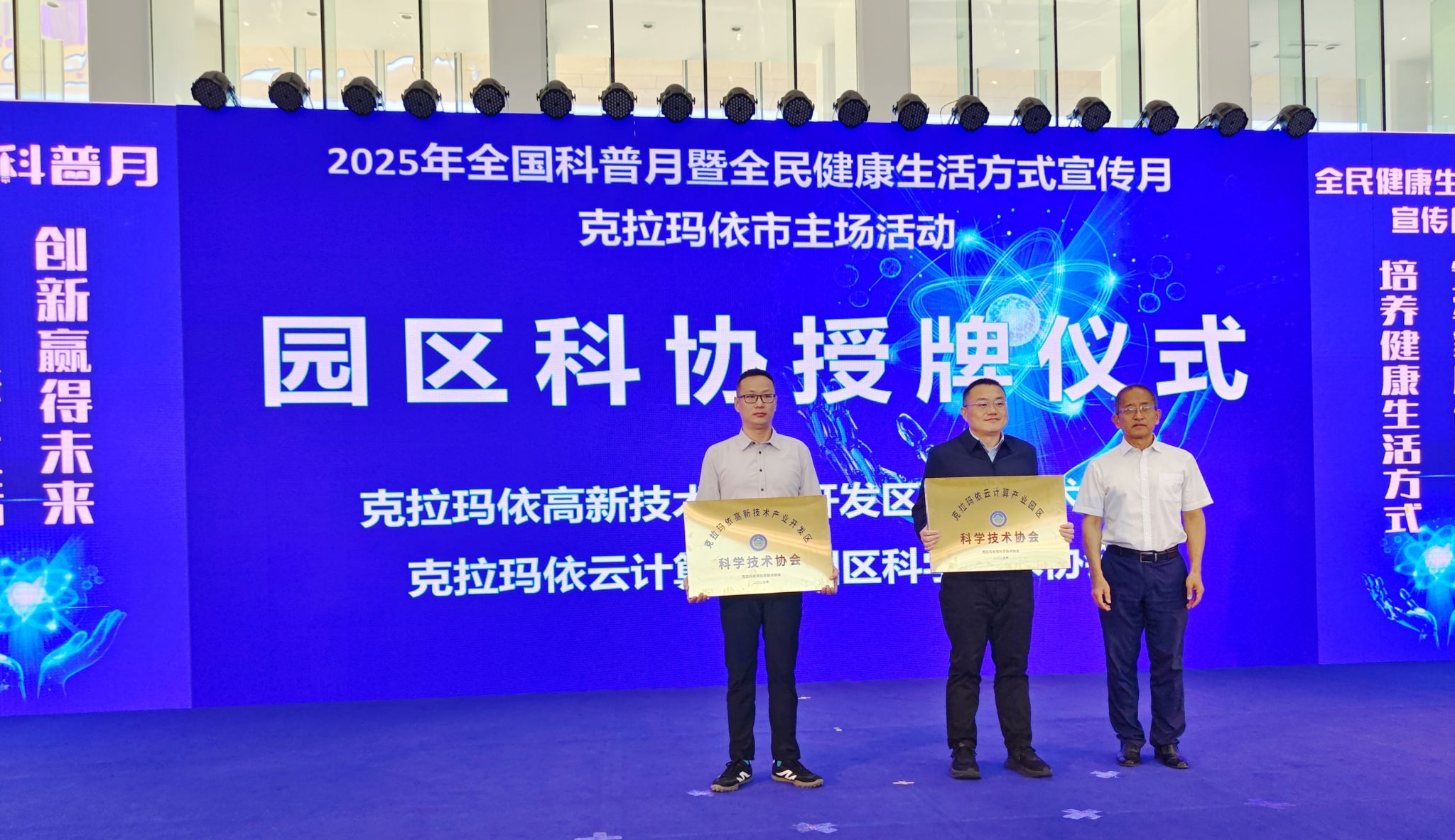 2025年全国科普月克拉玛依市主场活动上,克拉玛依市政协党组成员、副主席、市科协主席李旭升为新成立的克拉玛依高新技术产业开发区、克拉玛依云计算产业园区两家园区科协授牌。这标志着克拉玛依市首次实现了园区科协组织全覆盖。