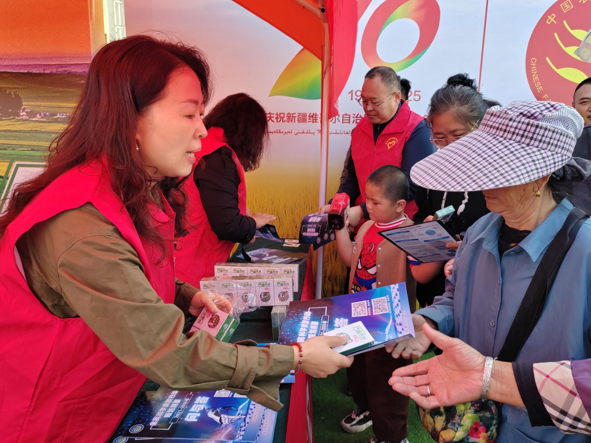 2025年新疆“中国农民丰收节”昌吉市六户镇十三户村主会场,除了瓜果飘香的丰收图景,昌吉州科学技术协会的科普摊位前同样热闹非凡。红色展棚上“科技赋能生活 智慧连接你我”的标语格外醒目,成为丰收节里一道别样的“科普风景线”。