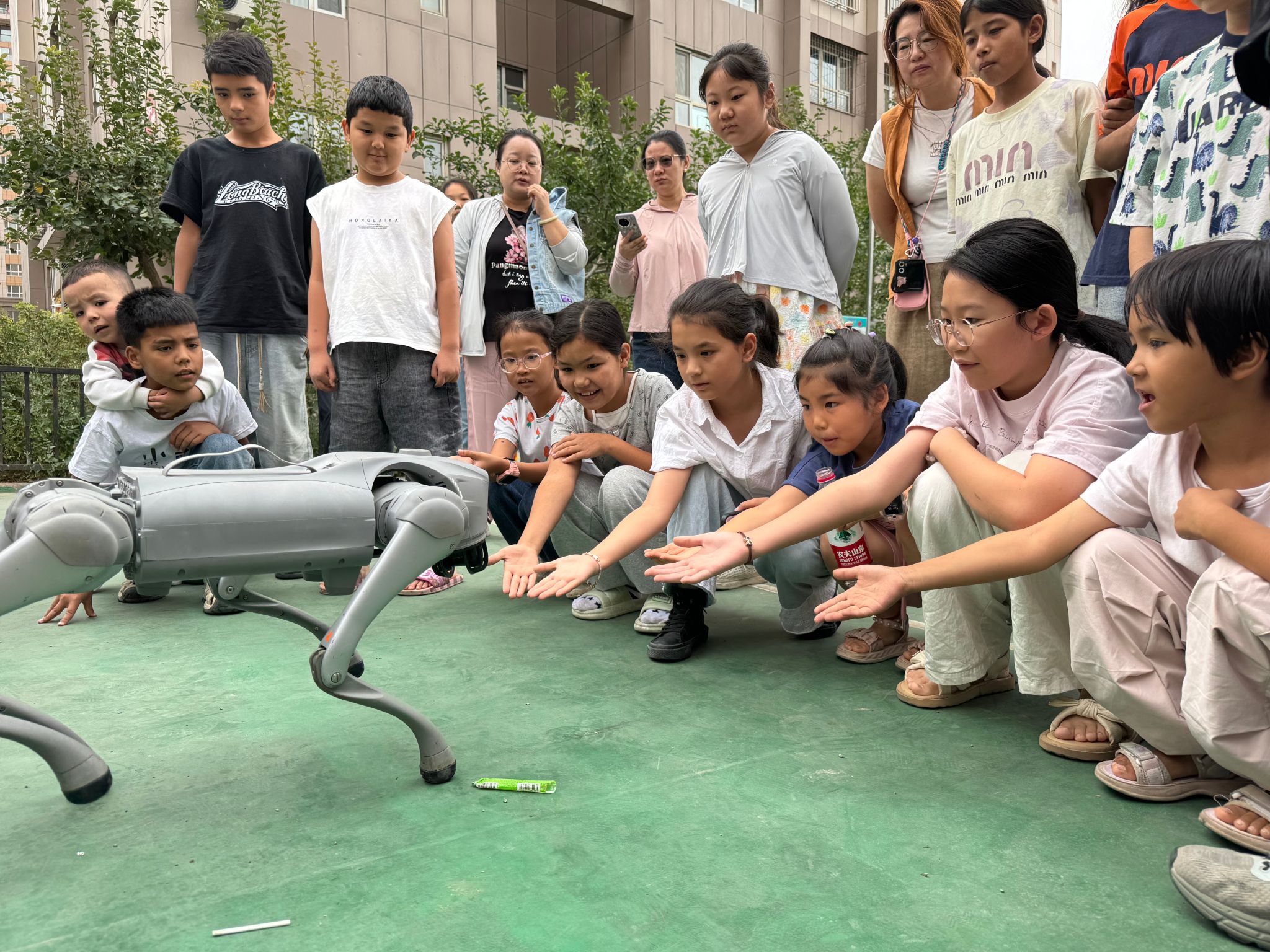 备受小朋友们喜爱的机器狗也来到现场,它灵活的身姿、可爱的动作萌翻全场。机器狗不仅能熟练地完成翻跟头、打招呼等动作,还热情地与小朋友们握手互动,让孩子们真切感受到了人工智能的魅力。小朋友们兴奋地围在机器狗身边,纷纷伸出小手,争着和这个可爱的“小伙伴”亲密接触。