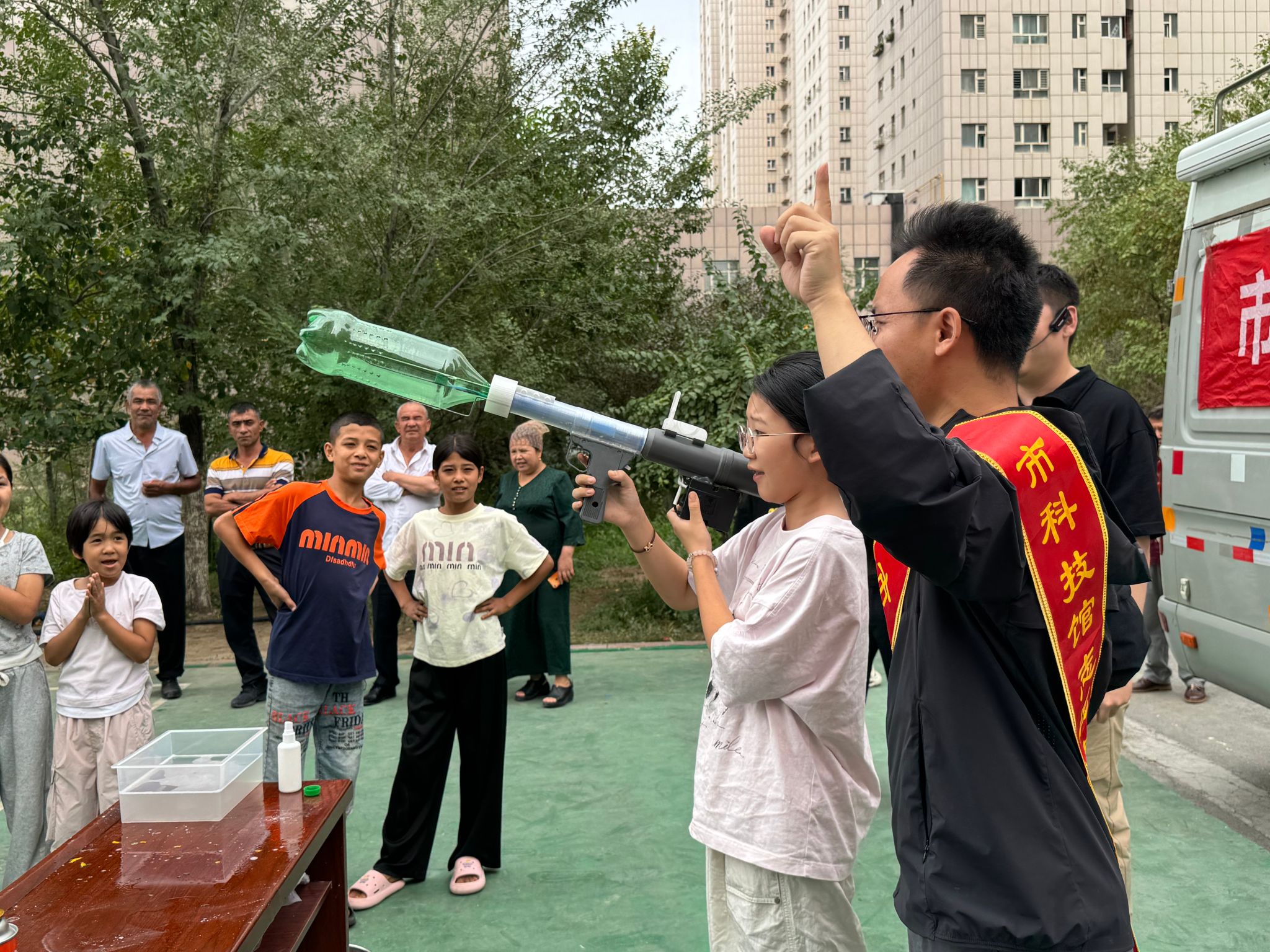 8月下旬,乌鲁木齐市科技馆科普大篷车缓缓驶入阳光雅居小广场,为黑甲山街道跃进街南社区的青少年带来了一场别开生面的科技盛宴。