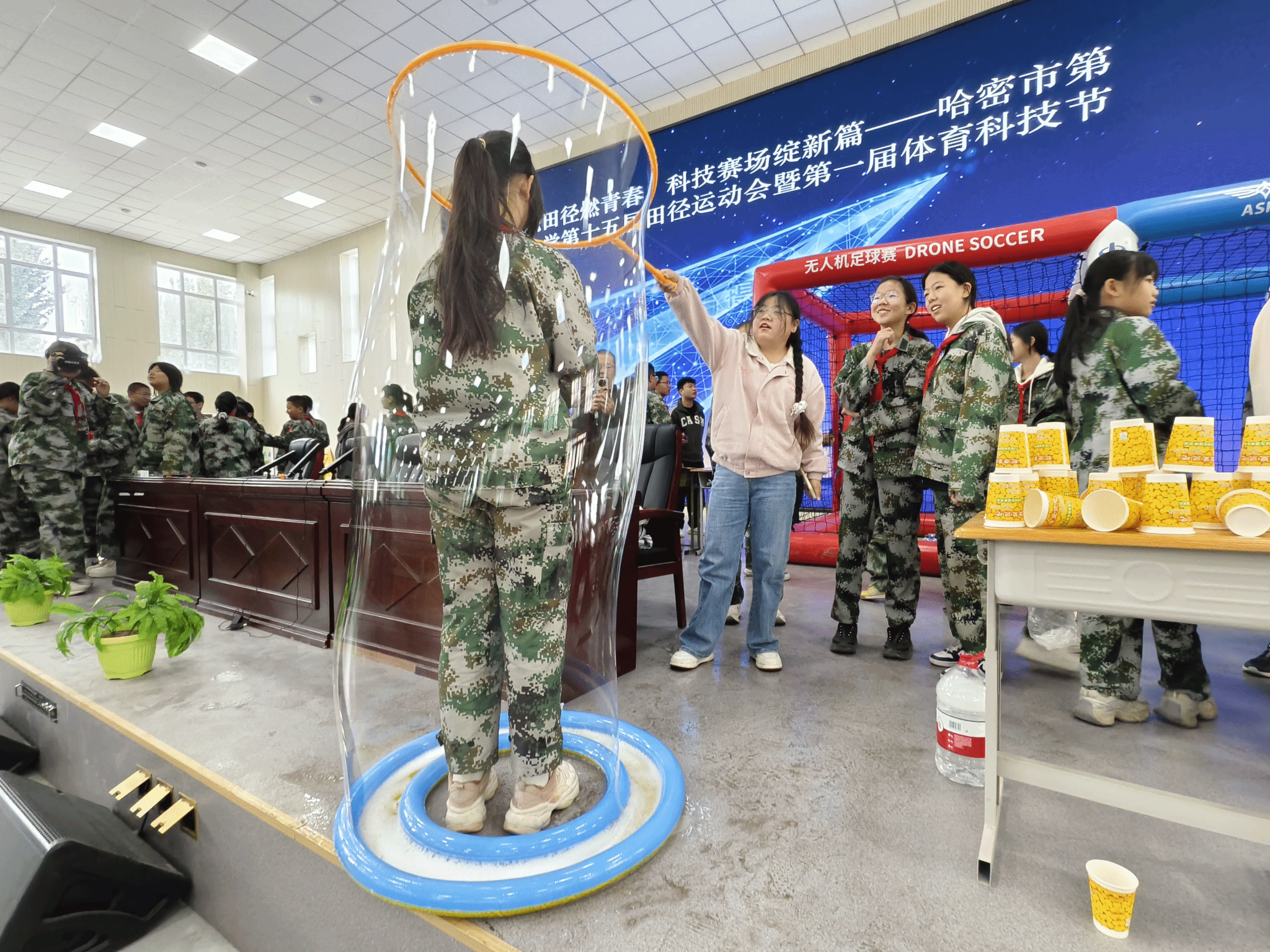 近日,哈密市科协在哈密市第八中学举办校园运动会科技展演活动。