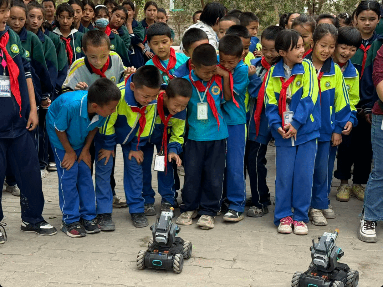 同时,2名大学生西部计划志愿者在教室内以“我们爱科学”为主题开展特色科普宣讲课,围绕“戏剧里的神奇脸谱”、“和聪明机器人交朋友”、“AI的超能力”、“看不见的小淘气”等内容进行宣讲,融合了传统艺术、自然科学与前沿科技,为学生带来知识盛宴,覆盖人数达100余人。在课堂上,志愿者从“和豆包对话”等智能设备切入,通俗解释AI原理,引导学生了解AI的基本知识、类型及应用,帮助他们初步建立起AI与日常生活的联系。“一起画脸谱”环节,志愿者从介绍脸谱知识出发,引导学生发现脸谱对称美学与角色性格的科学互动关联。“机甲坦克”互动展示环节吸引了学生们的好奇,志愿者向学生们讲解相关的编程原理和操控方法,让同学们在互动中体验人工智能知识、感受到科技的灵动与趣味。