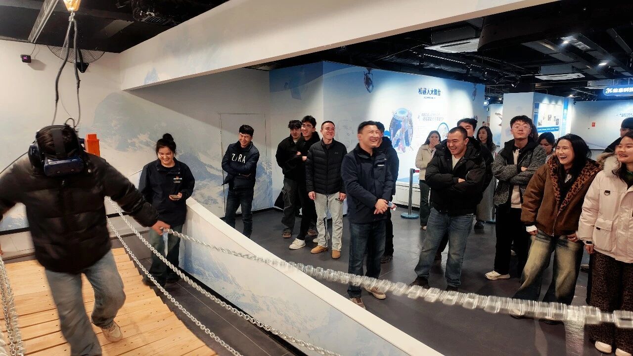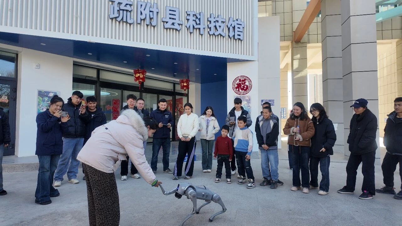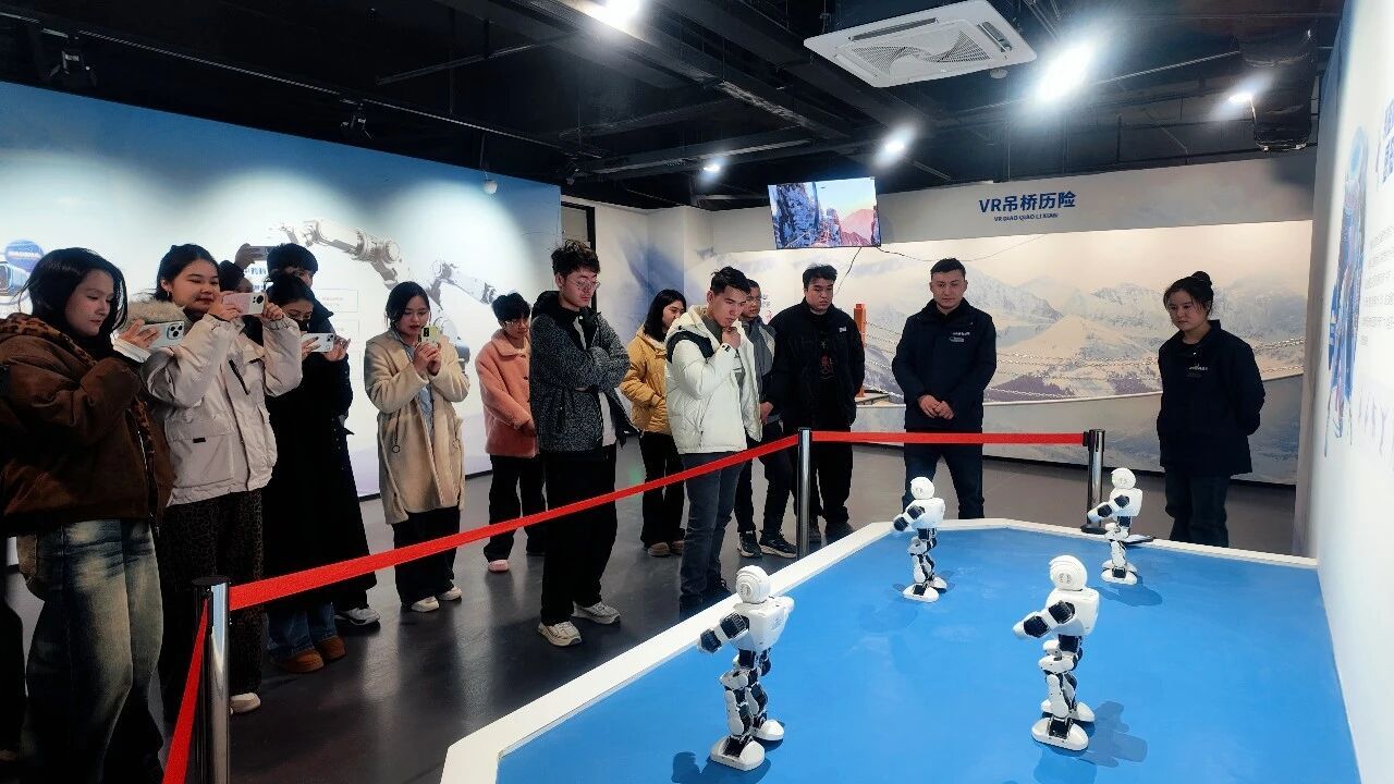 这些来自全国各地高校的学子,利用寒假将科技馆作为聚会与“知识充电”的新去处。VR体验区里,大家排队争相感受“翼装飞行”的刺激,摘下设备后仍意犹未尽,扫码探究背后的技术原理。机器狗展区同样热闹,大家边与它互动,边搜索编程逻辑,看到机器狗完成跳跃、翻滚等高难度动作,人群中惊叹声不断。返乡大学生阿卜杜吾普尔·萨迪克说:“每次放假回来都能感受到家乡的新变化。参观了科技馆,感受到了满满的科技感,真的很自豪。”