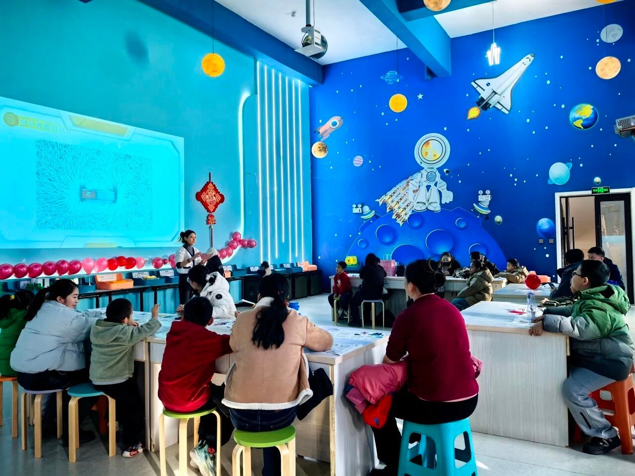 航天卫星主题的 “星链探微・天基智联工程营”、航天航空主题的 “星穹拓界・航天科创探索营”、科技馆里的科学课主题的 “智驱工程・车械科创工坊” 轮番上线,《探访卫星家族》《火箭发射架》《汽车大师》等 15 堂精品主题课依次开讲,同时配套开展 1 场春节主题科普活动,多元化的科普体验吸引 400 余名亲子家庭踊跃参与。寒假期间累计接待各族群众参观2300余人次。