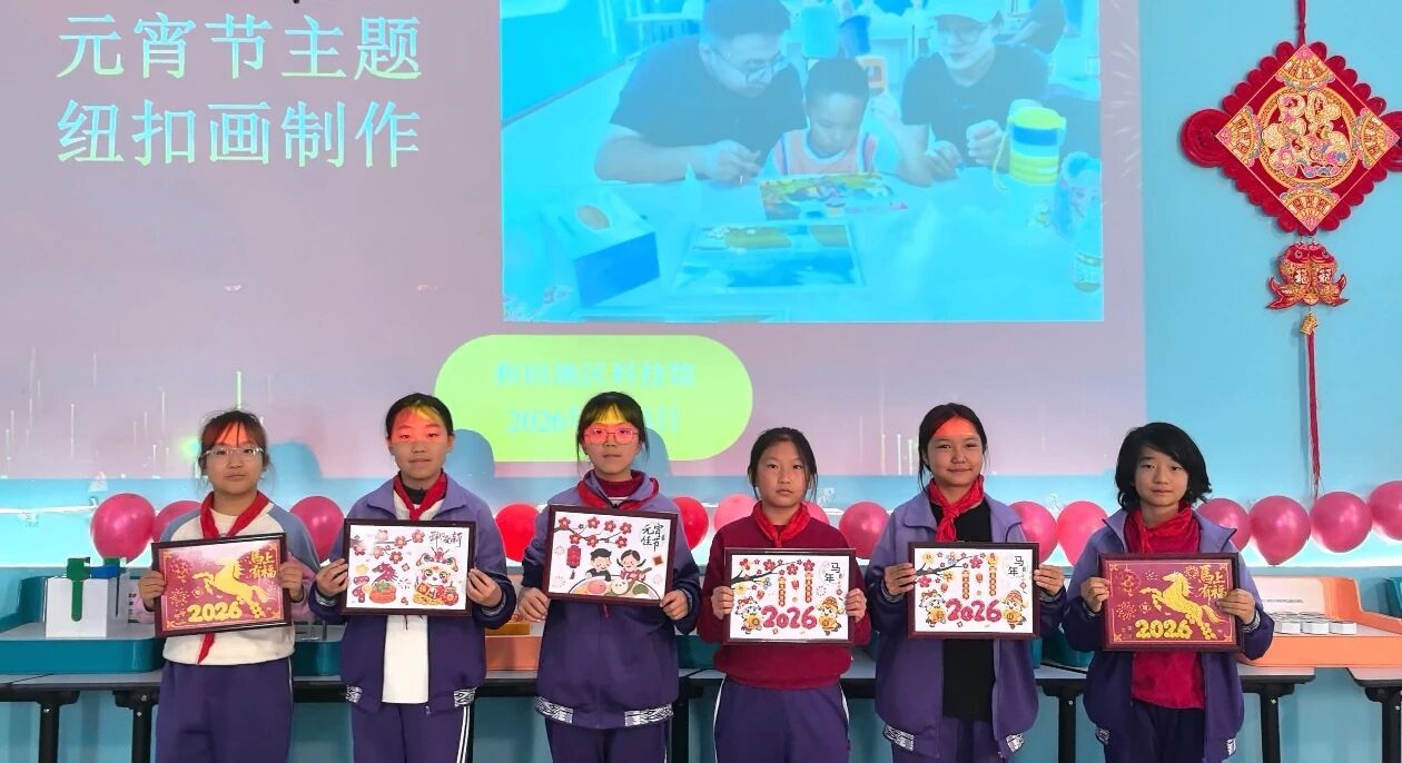 动手环节乐趣满满,元宵节主题纽扣画创意手工相框制作如约开启。孩子们化身小小艺术家,充分发挥想象力与创造力,以五彩纽扣为素材,围绕元宵、灯笼、团圆等节日元素认真构图、细心粘贴。在一粘一拼间,不仅锻炼了动手能力与审美能力,更将对元宵节的美好期许融入作品,一件件精致可爱、充满童趣的纽扣画相框陆续完成,成为孩子们独一份的节日专属纪念。