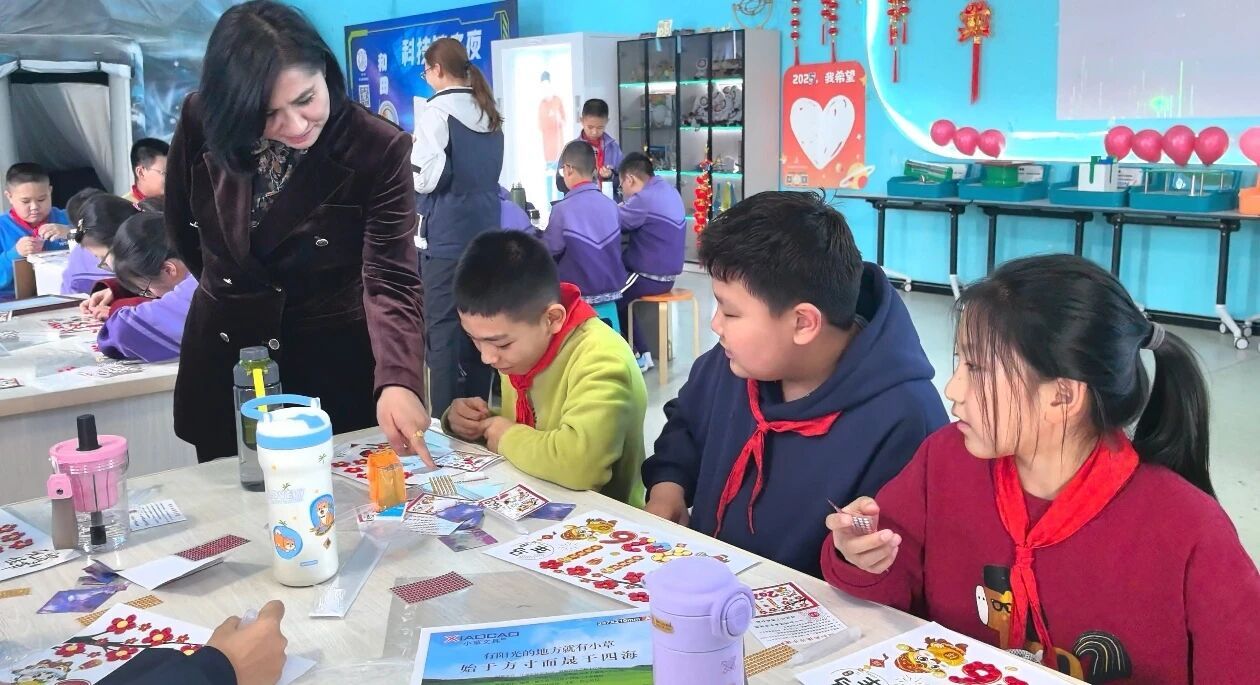 元宵花灯映童趣,科普相伴启新程。为传承中华优秀传统文化,让青少年在节日氛围中感受科学魅力,2026年3月 3日16:30-18:00,和田地区科技馆秉持“文化润童心、科普伴成长”理念,联合和田市第一小学,在科技馆三楼综合体验区开展“喜乐闹元宵 科普润童心”为主题的元宵节科普活动,35名师生欢聚一堂,在趣味实验、知识闯关、手工创作与展厅探索中,度过了一场融民俗韵味与科学趣味于一体的别样元宵。