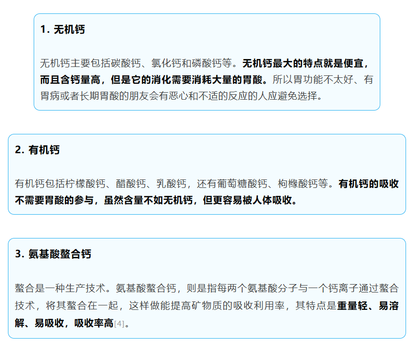 我们在超市、药店或者网上可以看到各种各样成分的钙片,无论包装多么的炫酷,都只有三类:有机钙、无机钙、螯合钙。
