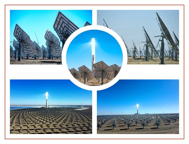 作品创新点:这组作品为了多角度展现,是用无人机和相机拍摄。用全景与特写交织,凸显定日镜反光与熔盐储热的技术细节;借荒漠与科技设施的对比,既显工程魄力,又传递“光热转化”的环保内核。
