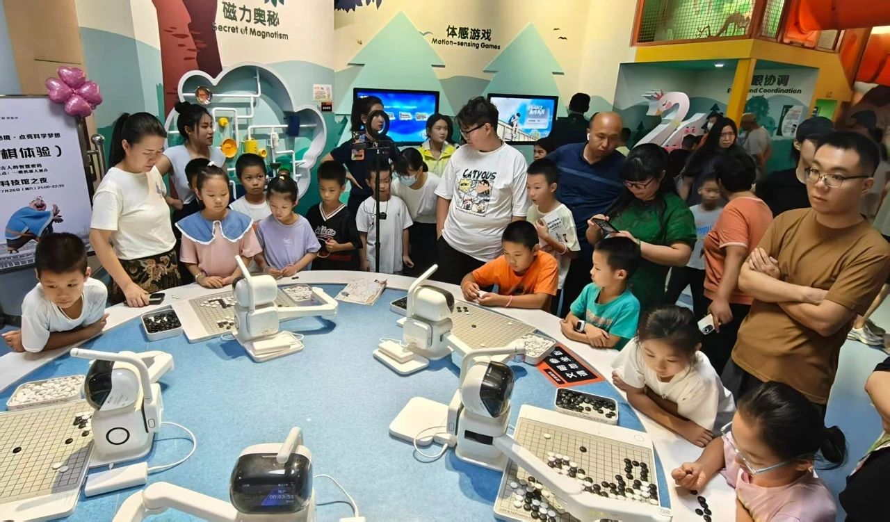 学生潘烁阳第一次与机器人元萝卜对弈围棋,兴奋地说:“与机器人下棋太有趣了。”