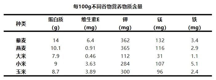 藜麦还富含 B 族维生素以及铁、镁、钙、钾、锌、锰等多种矿物质,其矿物质含量高于一般的谷物;藜麦还富含维生素 E,其维生素 E 的含量是大米的 30 倍,而维生素 E 有助于抗衰老。